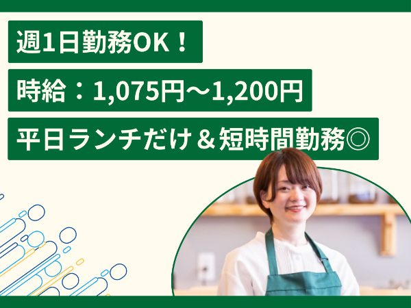 【急募】週1日勤務OK!喫茶店ランチスタッフ募集|土日祝完全お休み!平日だけ&短時間◎WワークOK!